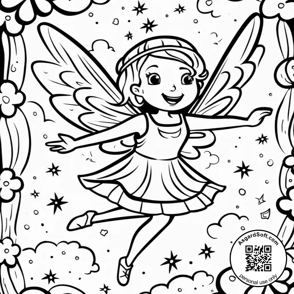 Coloring page for kids of an magical fairy.